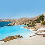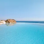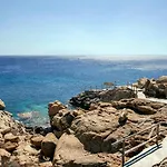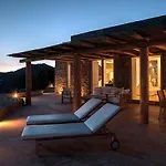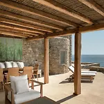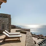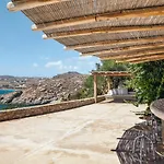 Liberation Villa dysponuje słonecznym patio z widokiem na górę, 20 min jazdy od lotniska Mykonos.